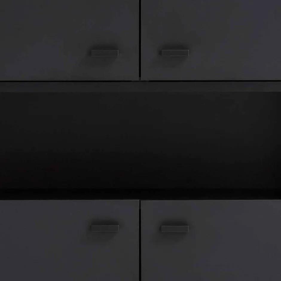 - Unten vier Schuhreihen mit Ablagestangen, Platz für bis zu ca. acht Paar Schuhe bis Größe 45