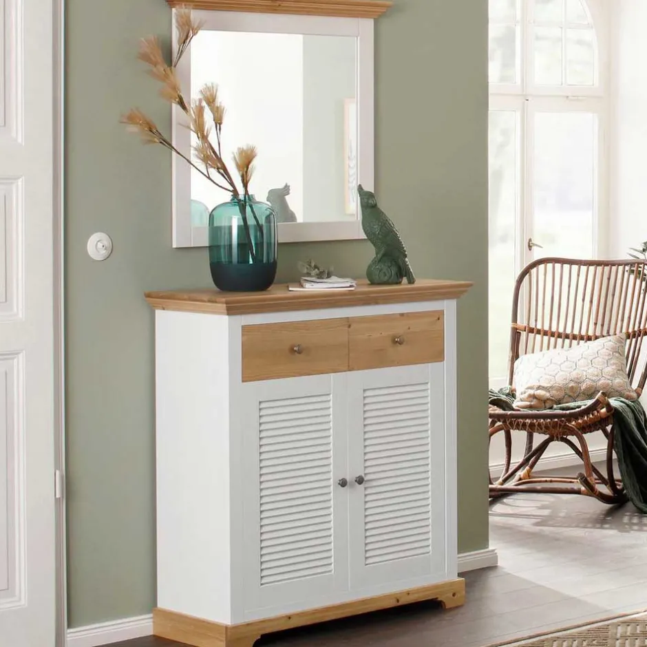 - Praktischer Schuhschrank in Weiß und Kiefer Honigfarben