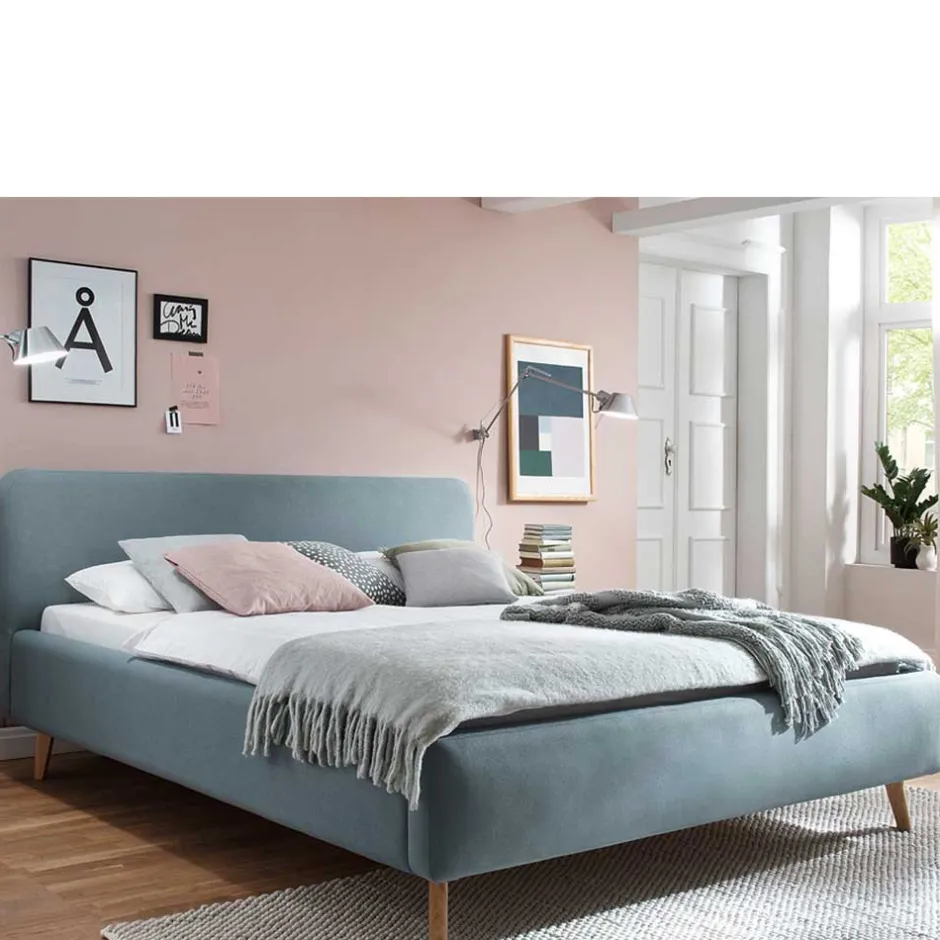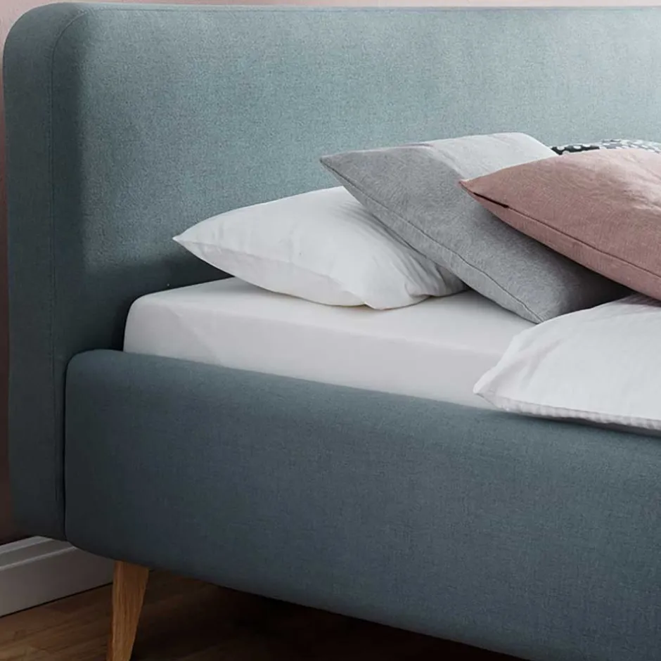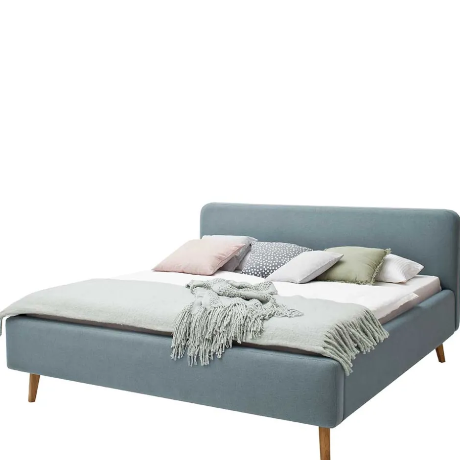 - Brandaktuelles Polsterbett in Hellblau und Eichefarben