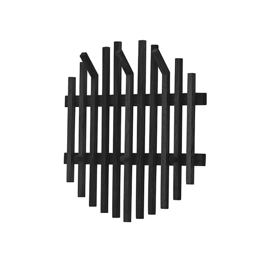 - Unten drei runde Haken und oben drei große, schräg gestellte Haken