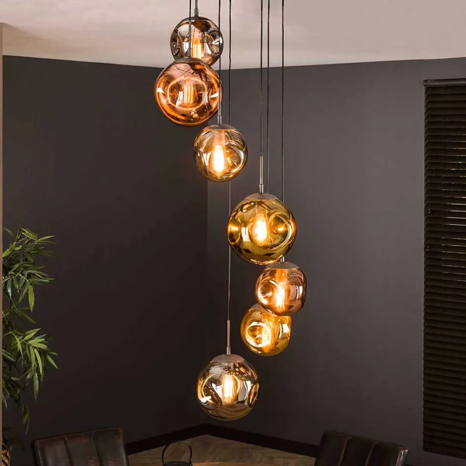 - Glamouröse Pendelleuchte in Chrom, Kupfer- und Goldfarben