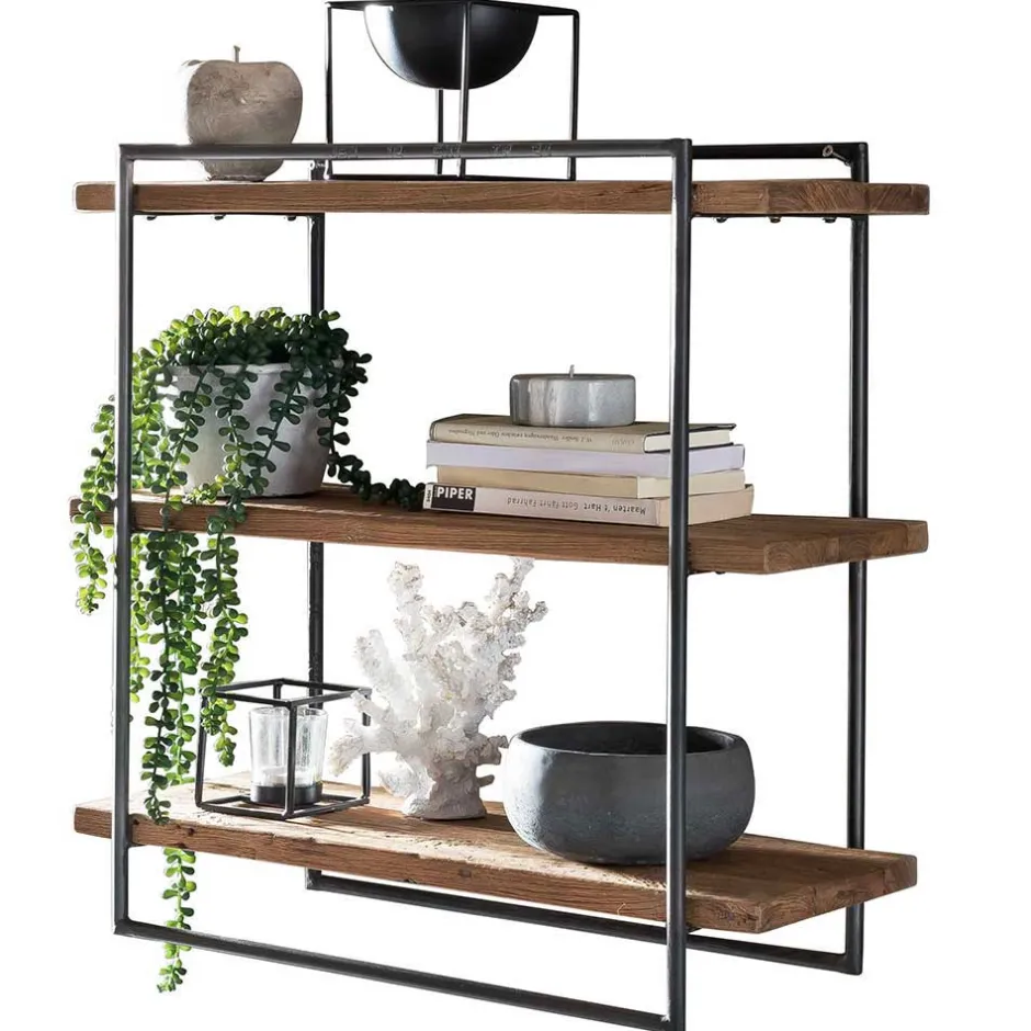 - Zwei Metallrahmen mit drei rustikalen Regalböden