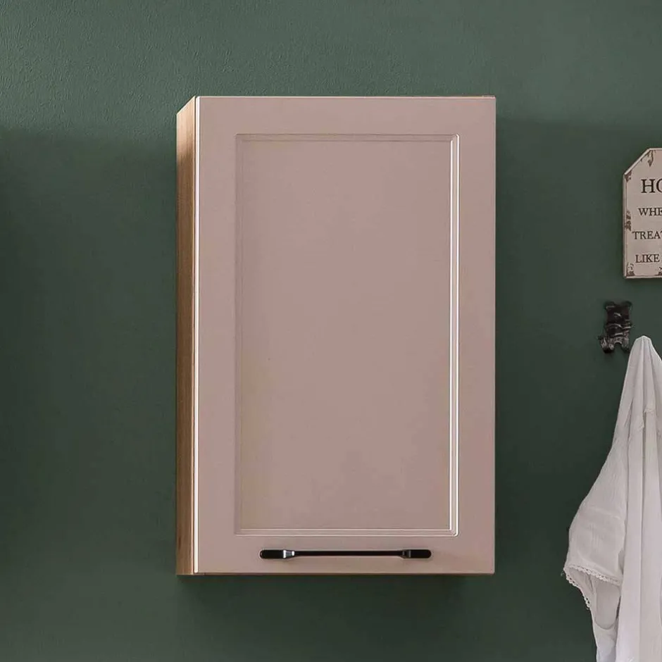 - Praktischer Bad Oberschrank in Hellgrau und Wildeichefarben