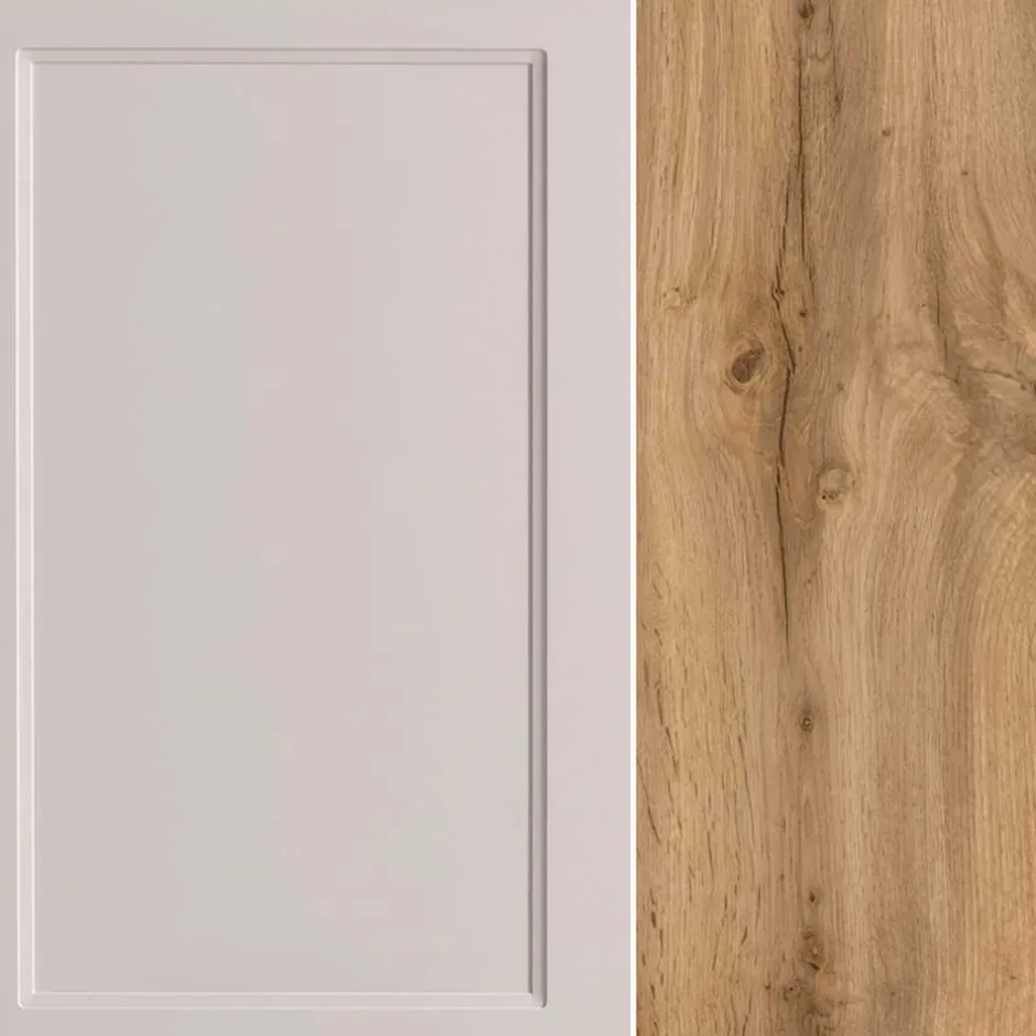 - Front in Hellgrau foliert, Korpus in Holzoptik Wildeiche melaminbeschichtet