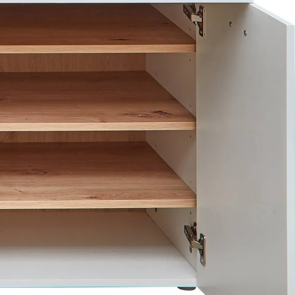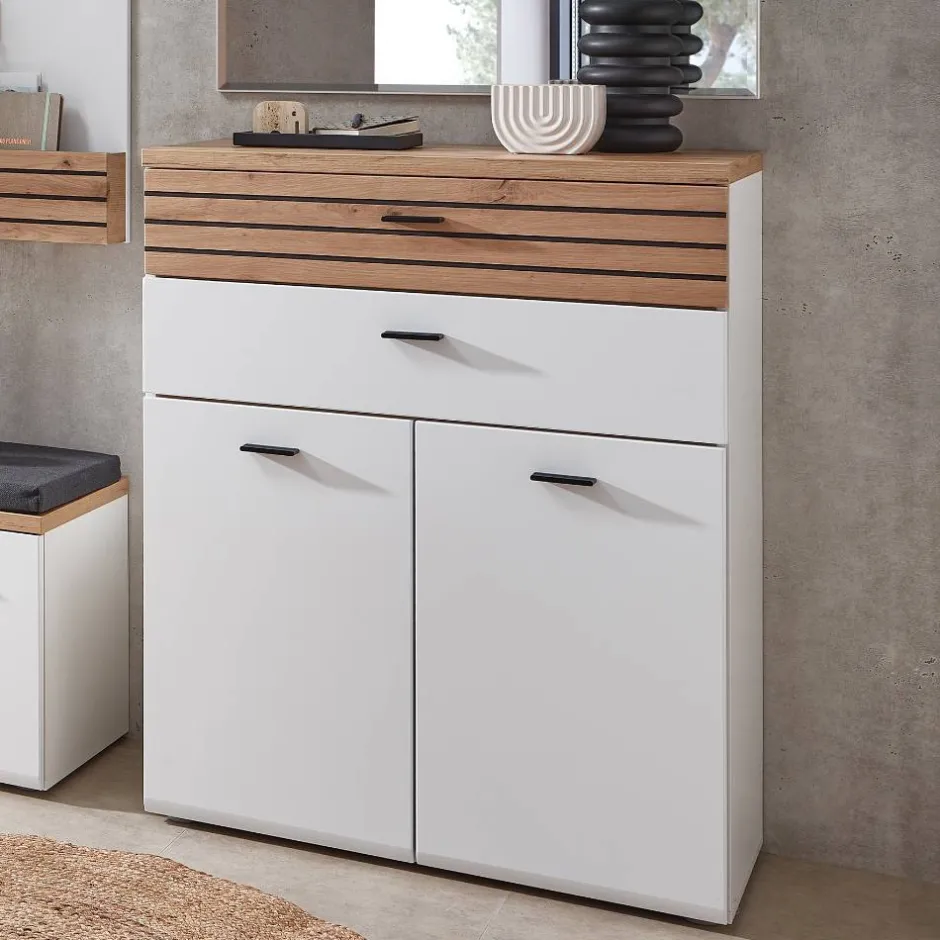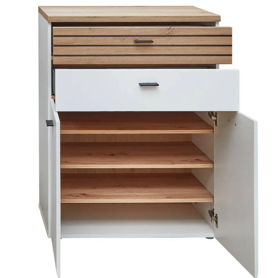 - Praktischer Schuhschrank in Weiß, Weiß matt und Wildeichefarben