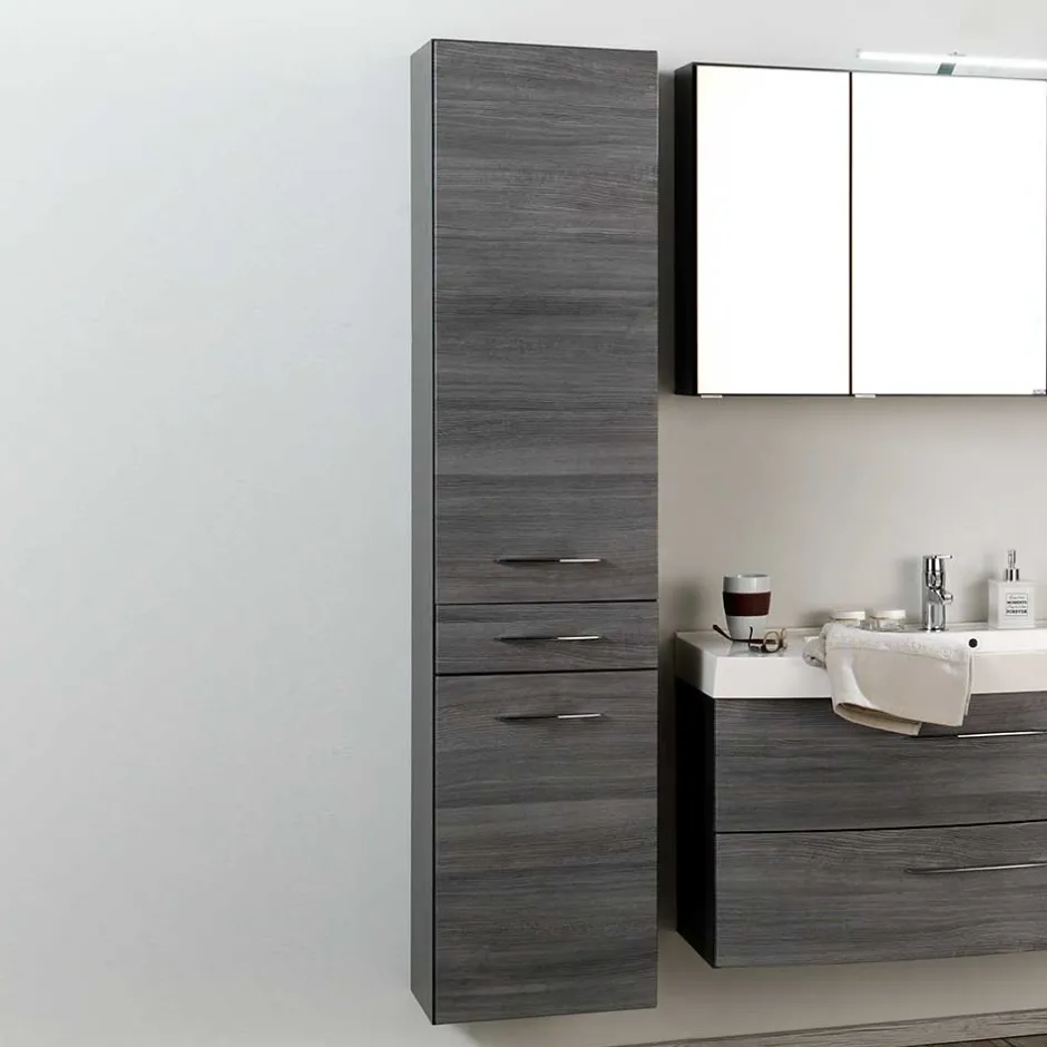 - Attraktiver Bad Hochschrank in Eiche Rauchsilber