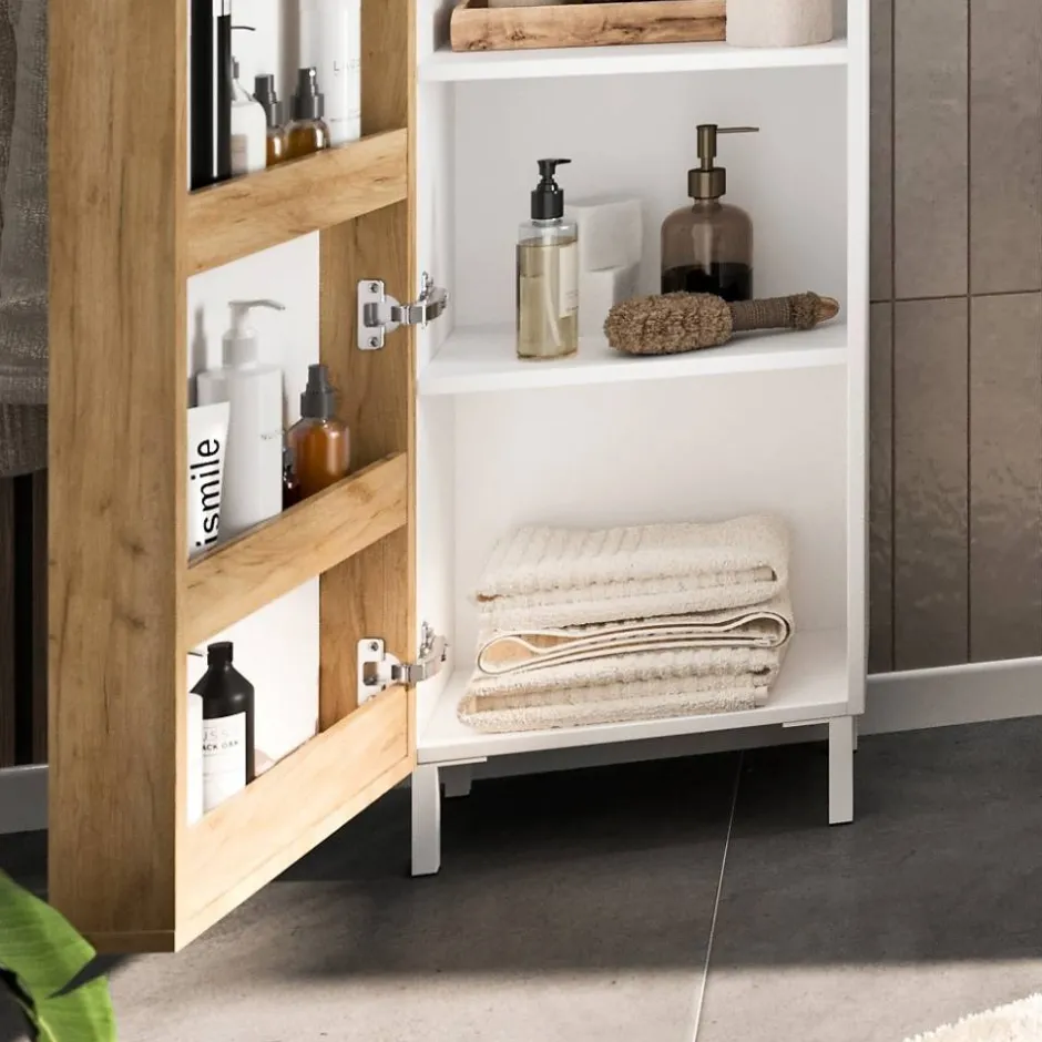 - Klasse Bad Hochschrank in Weiß und Eichefarben