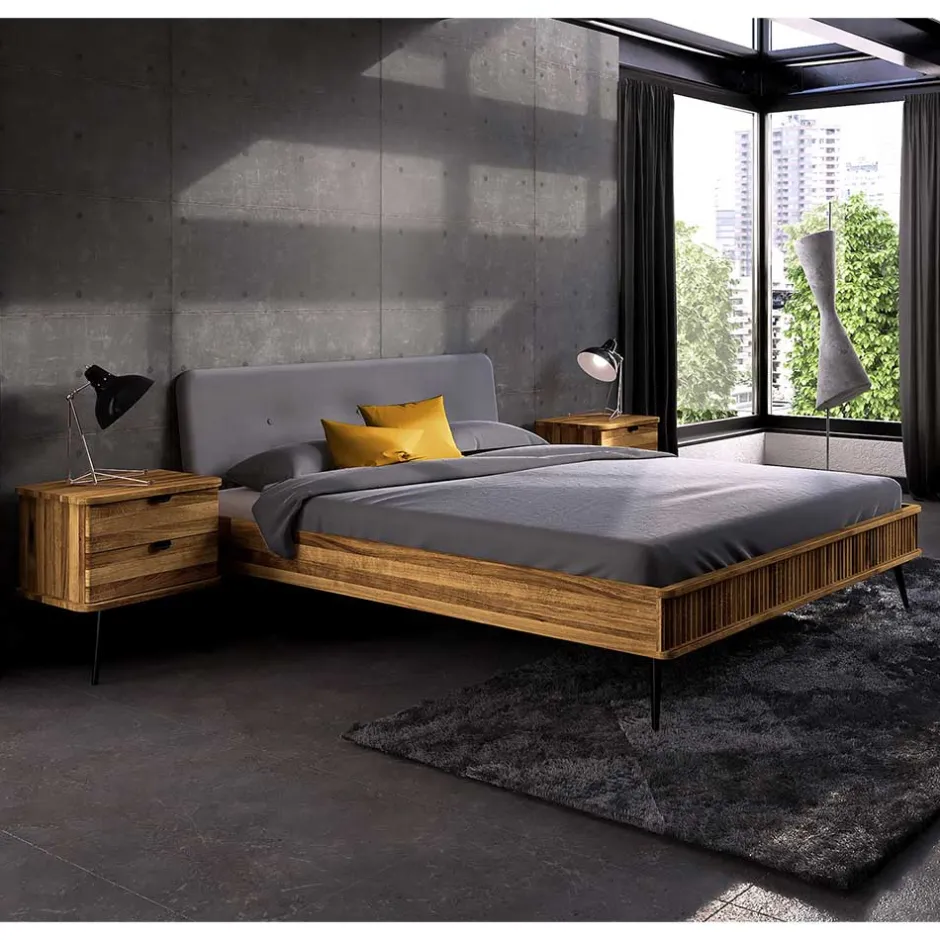 - Faszinierendes Bett in Wildeiche, Schwarz und Grau