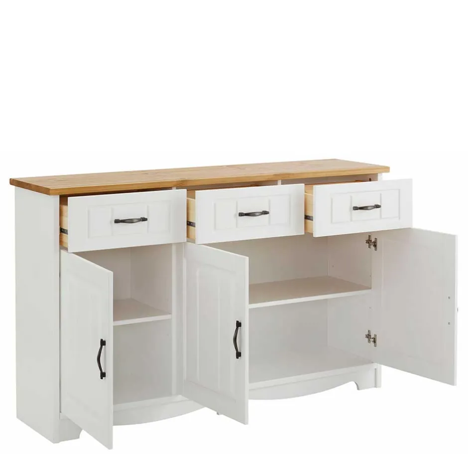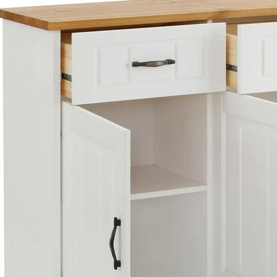- Schmuckes Landhaus Sideboard in Kiefer Weiß und Honigfarben