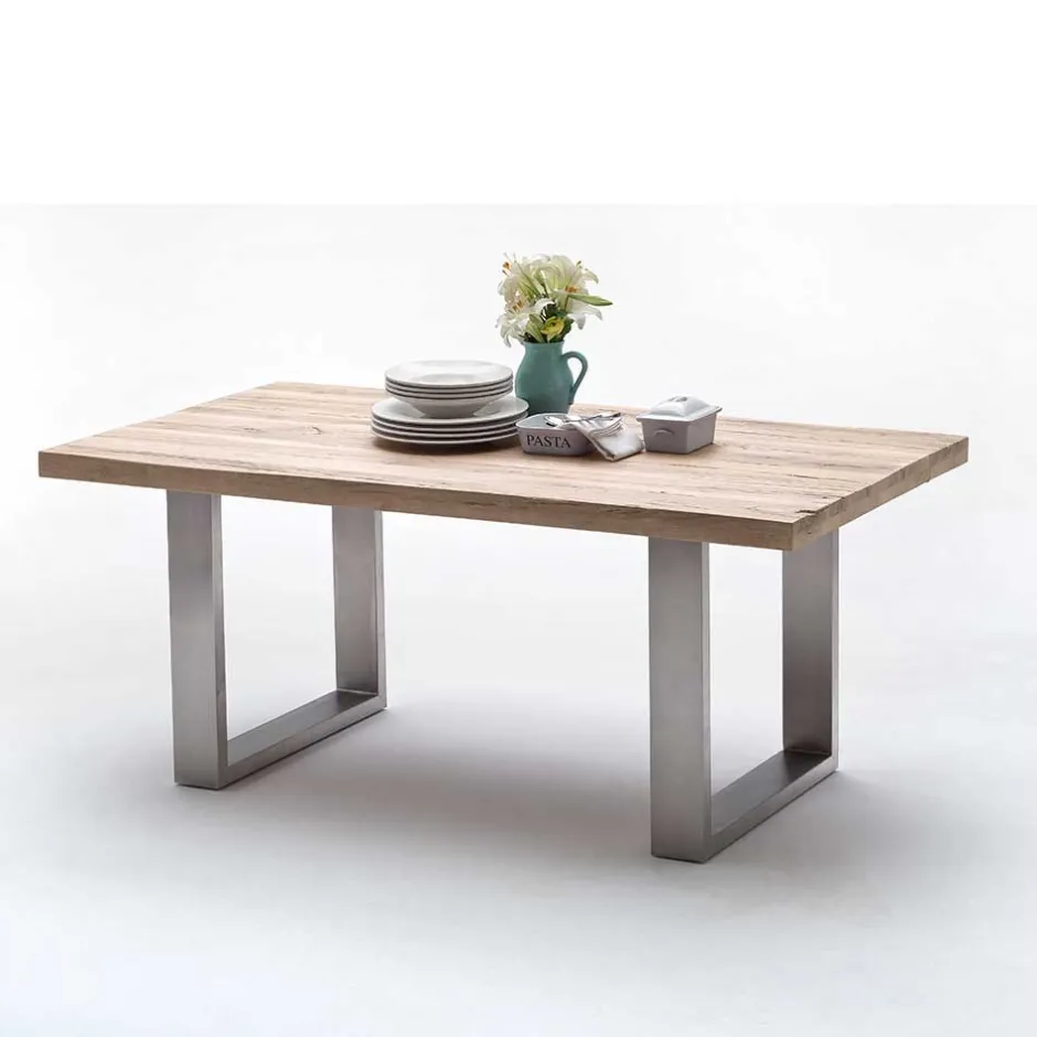 - Extravaganter Esstisch in Eiche gekälkt und Silberfarben