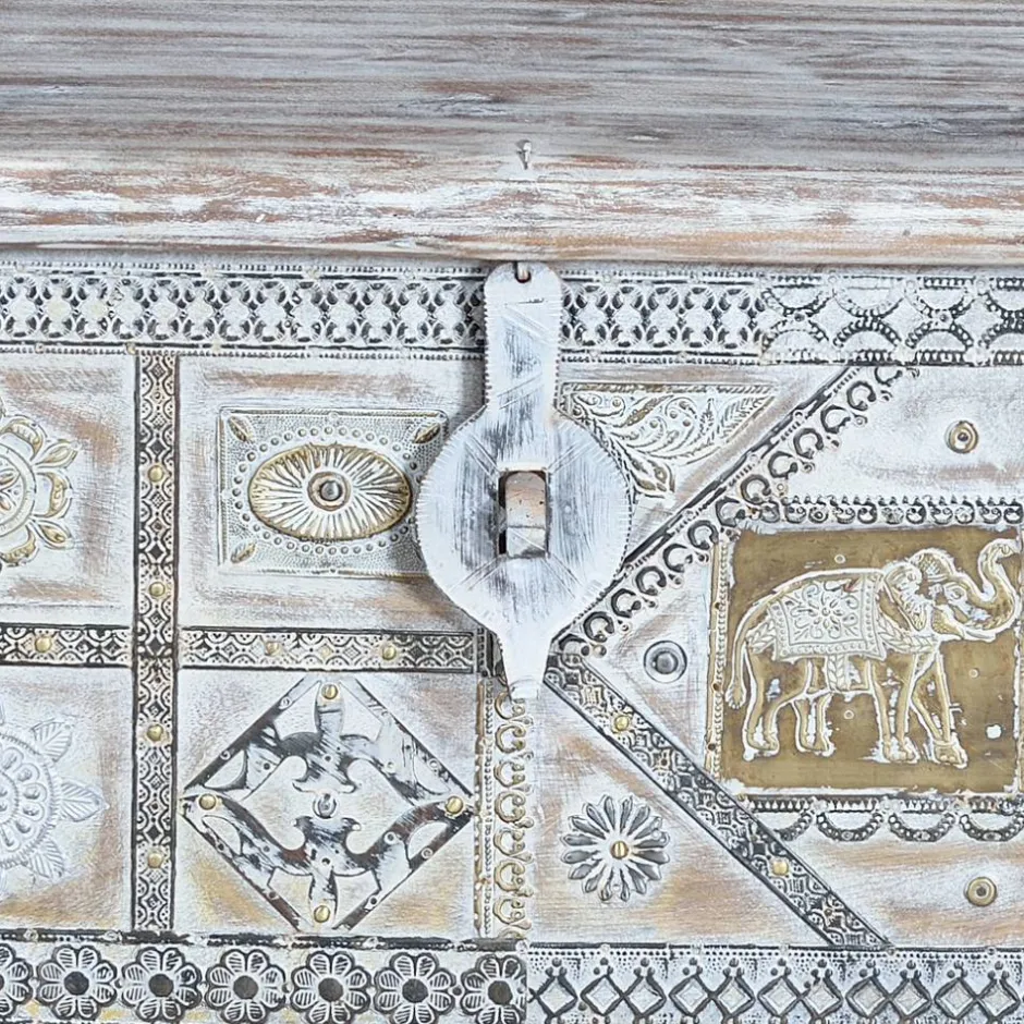 - Dekorative Truhe in Holz White Wash und mehrfarbig