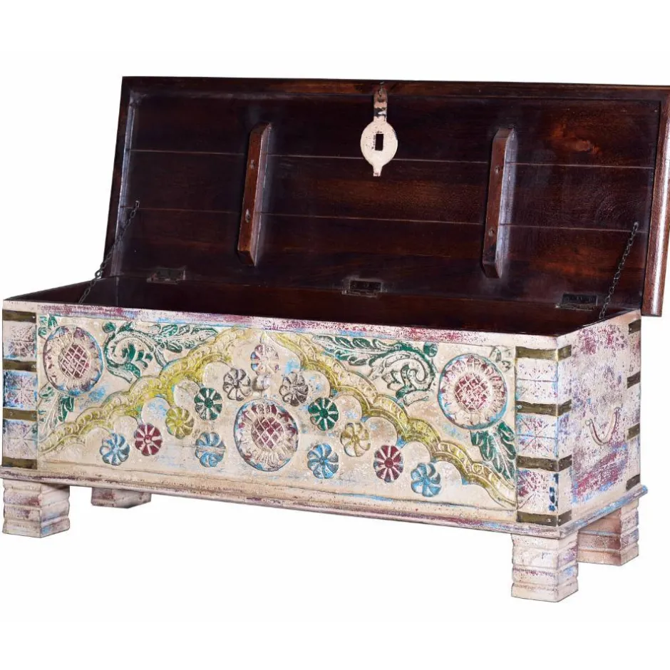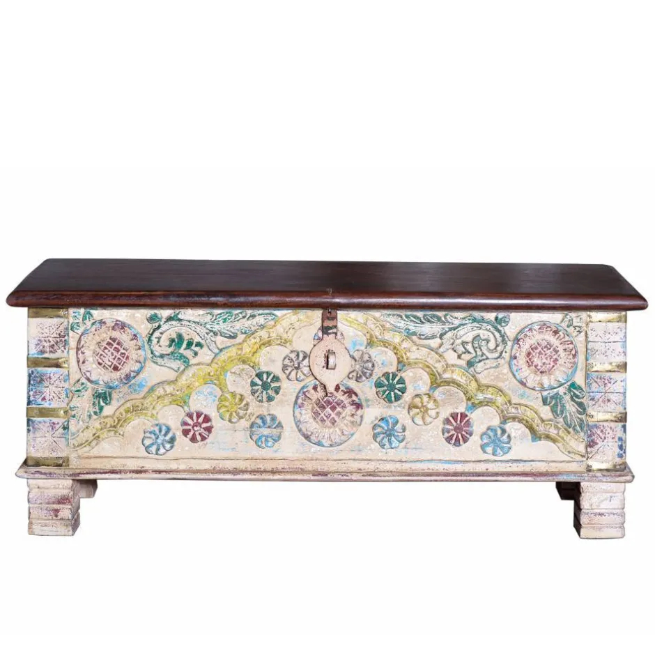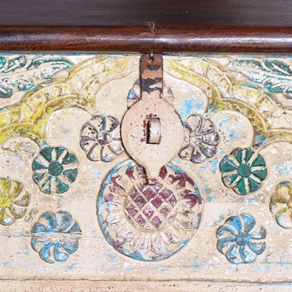 - Hübsche Truhe in Pastellbunt, Bronzefarben und Dunkelbraun