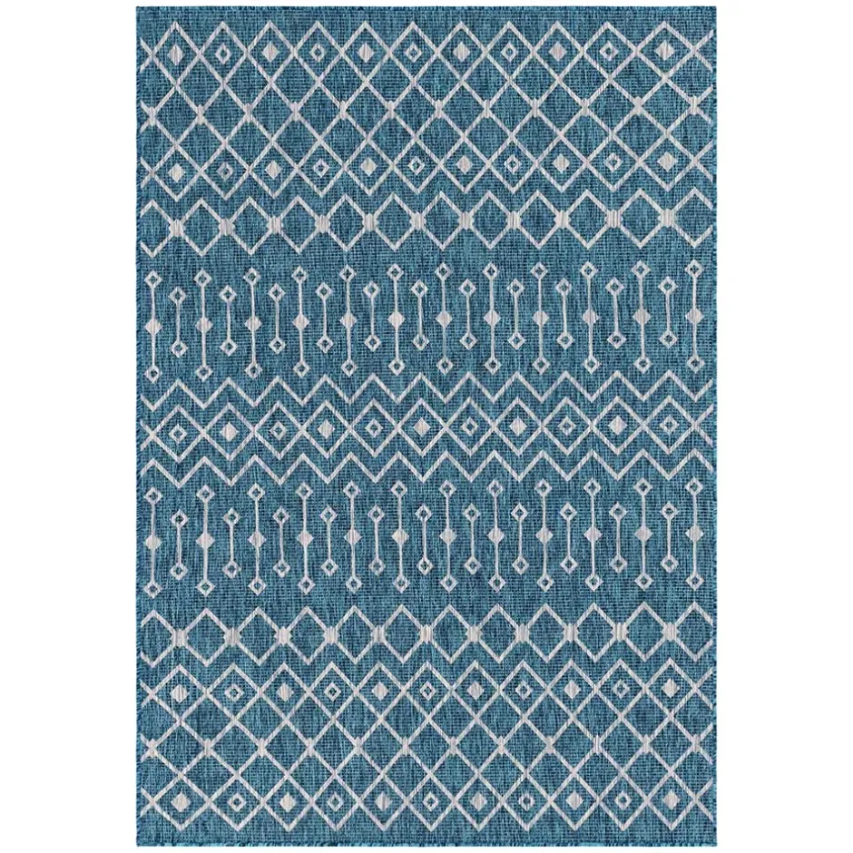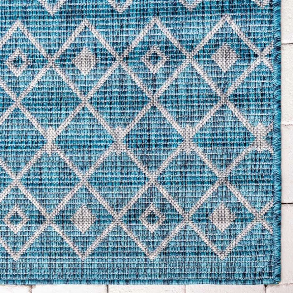 - Attraktiver In- und Outdoorteppich in Petrol und Hellgrau