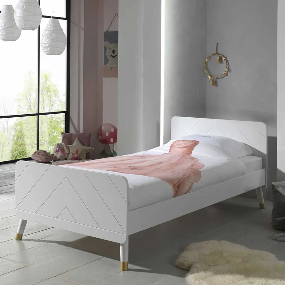 - Topaktuelles Kinder- und Jugendbett in Weiß und Goldfarben