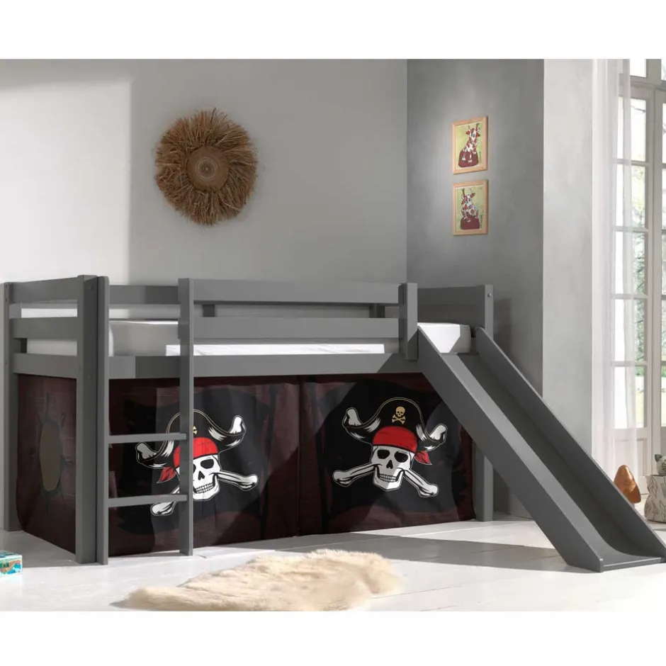 - Abenteuerliches Kinder Halbhochbett in Grau und Bunt