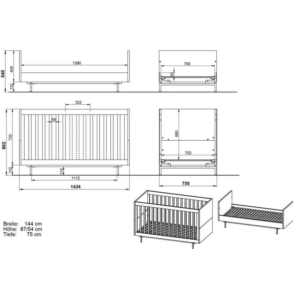 - Modernes Babybett in Grau