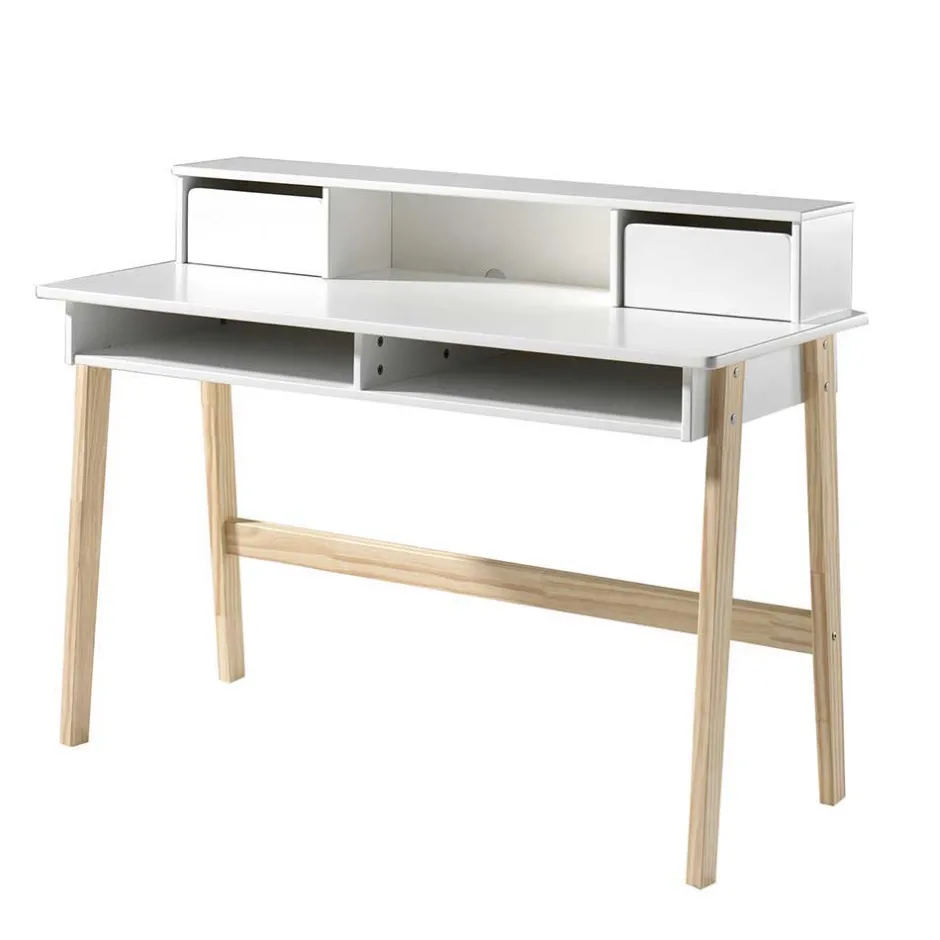 - Schicker Schreibtisch in Weiß und Kieferfarben