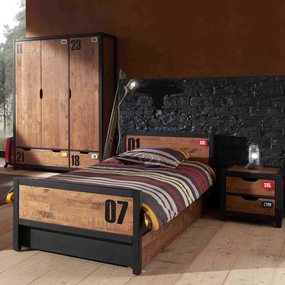 - Super Kinderzimmer in Kiefer Cognacfarben und Schwarz
