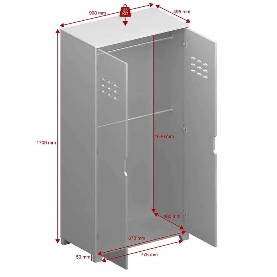 - 2 türig, Innenaufteilung: Mit Kleiderstange