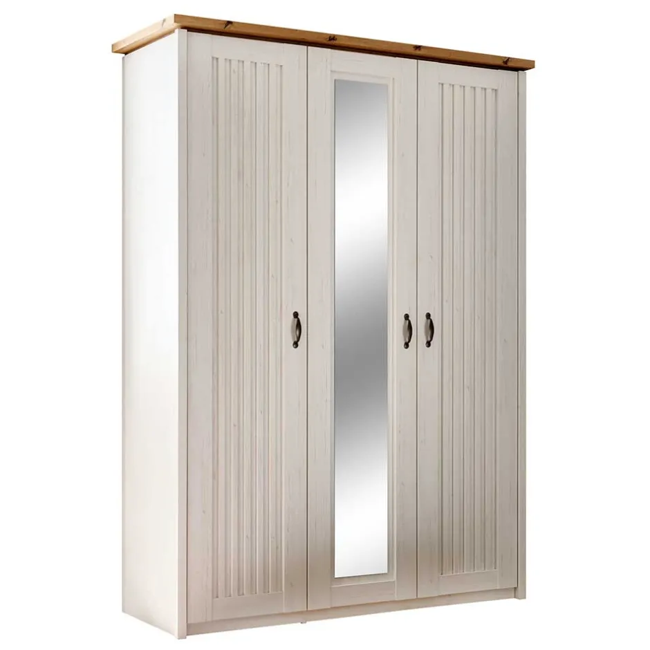 - Formschöner Kleiderschrank in Pinie Weiß und Eichefarben