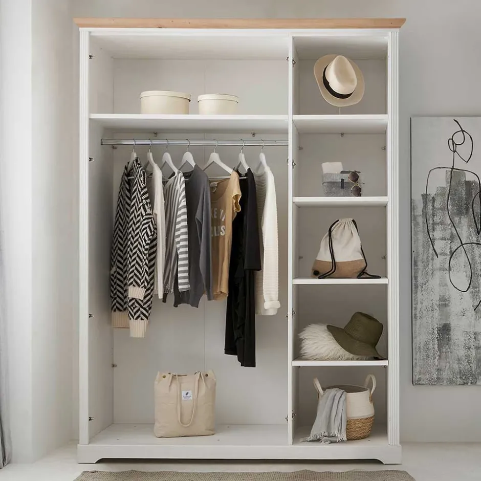- Drei Türen mit Kleiderstange und Einlegeböden schaffen viel Platz für Kleidung