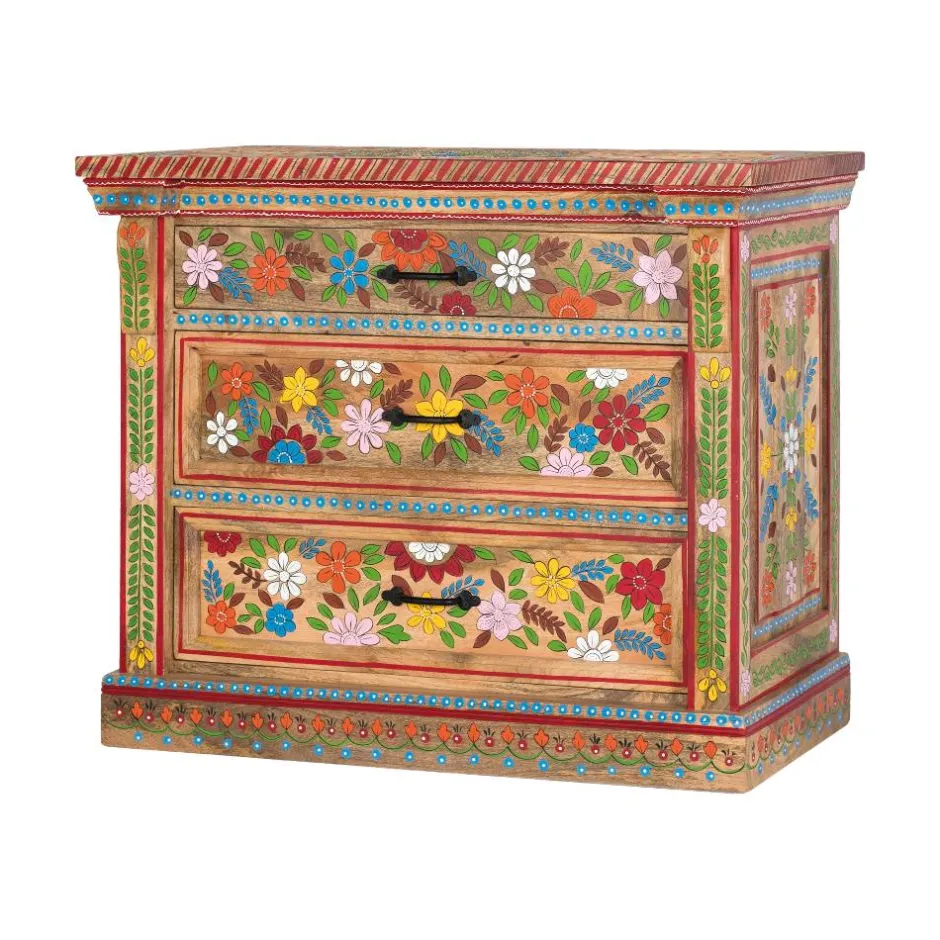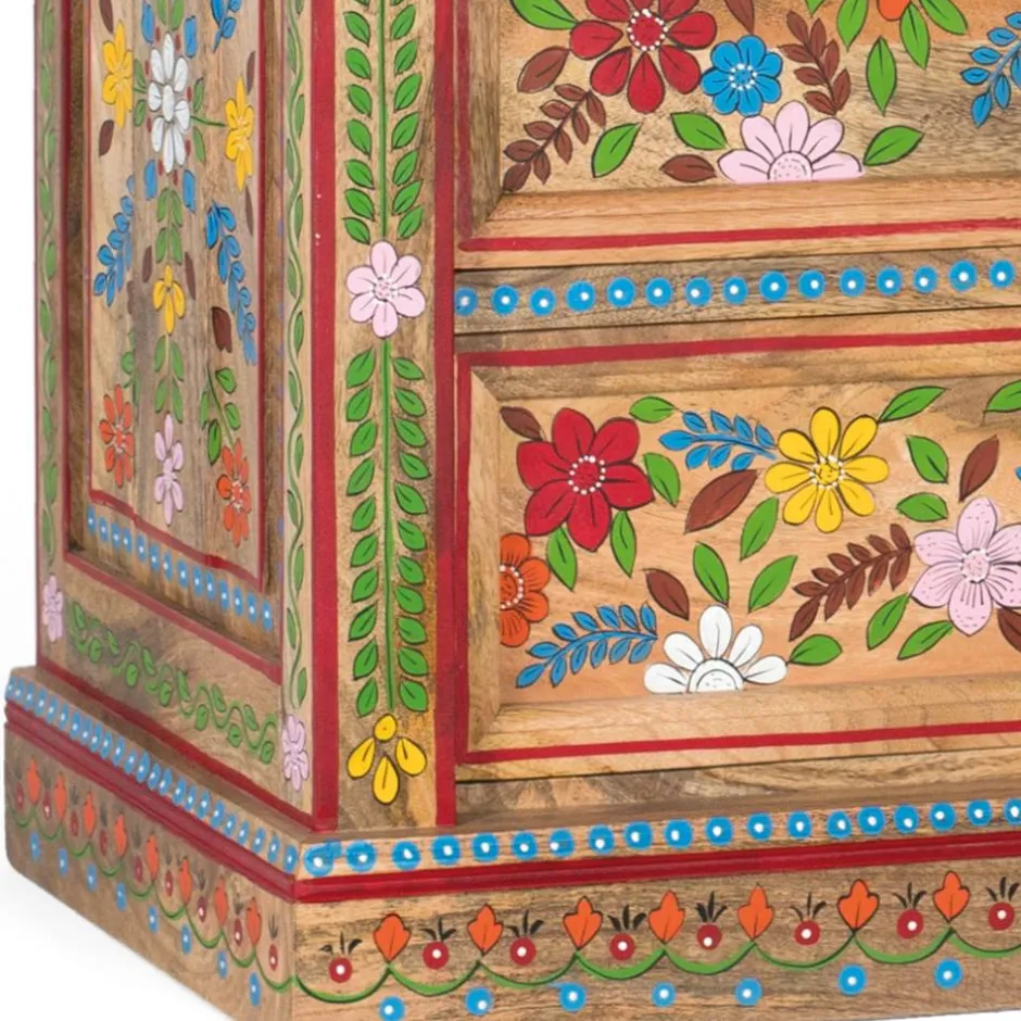 - Attraktive Folklore Kommode in Mangoholz Naturfarben und Bunt