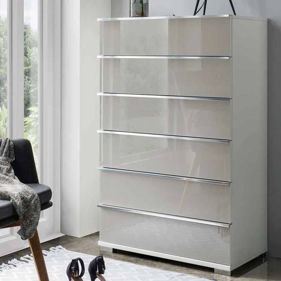 - Wohnliche Schlafzimmer Kommode in Hellgrau und Weiß