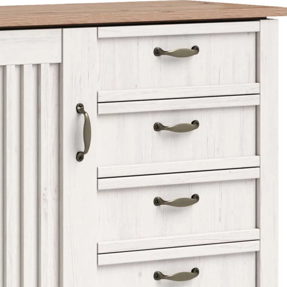- Strapazierfähige Oberflächen, in Holzoptik Weiß und Eiche foliert