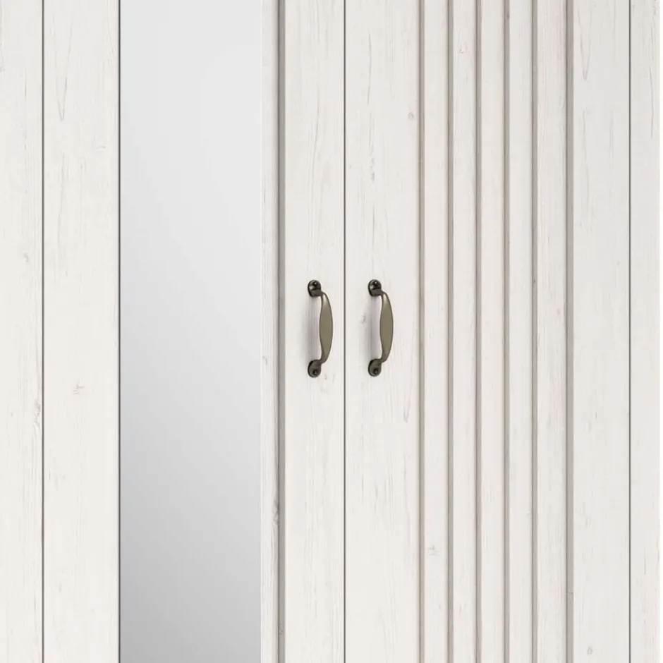 - Hinter den Doppeltüren zwei Einlegeböden und eine Kleiderstange, hinter der mittleren Tür vier EinlegebödenHinter den Doppeltüren zwei Einlegeböden und eine Kleiderstange, hinter der mittleren Tür vier Einlegeböden