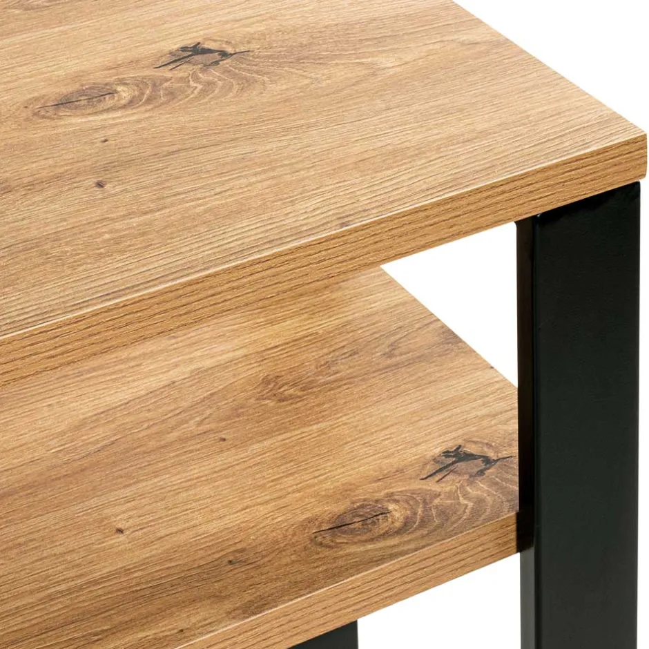 - Metall schwarz lackiert, MDF in Holzoptik Eiche melaminbeschichtet