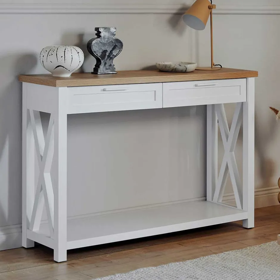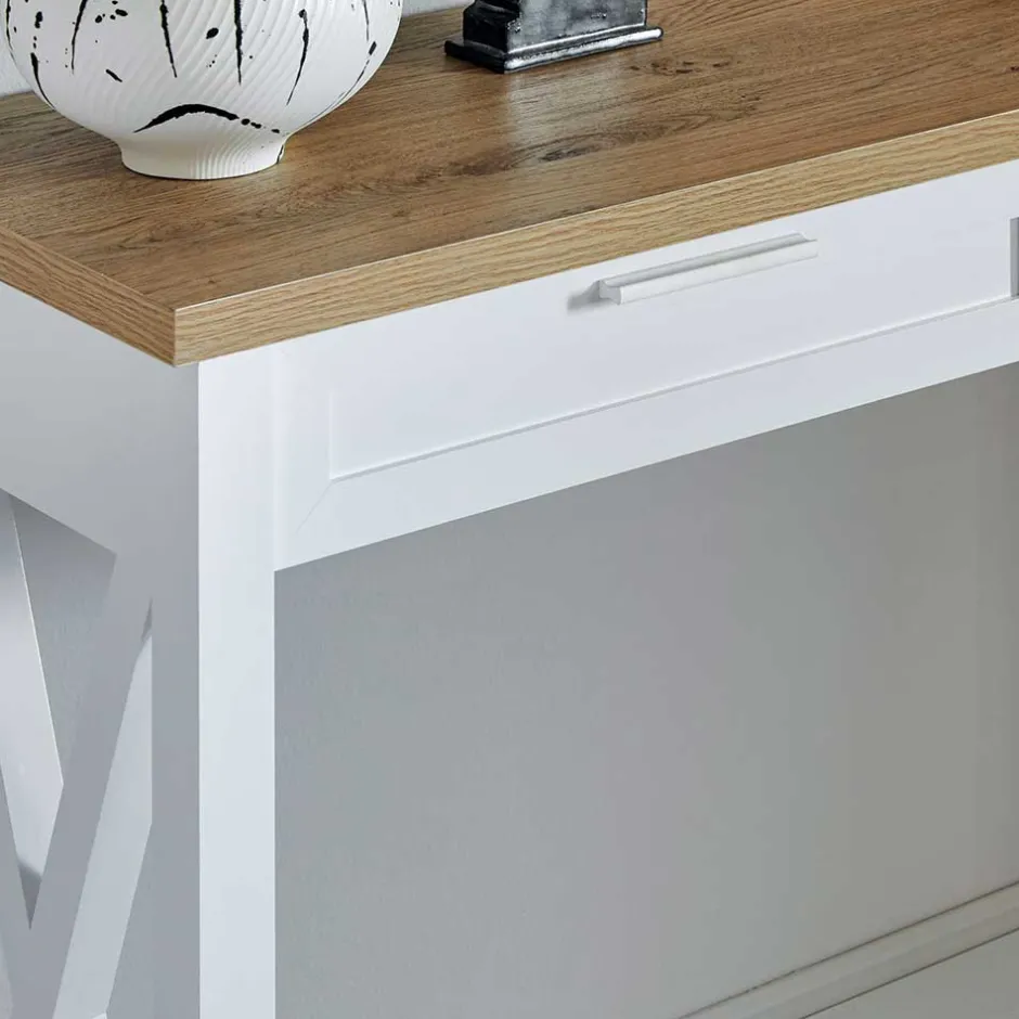 - Klasse Konsolentisch in Weiß und Eichefarben
