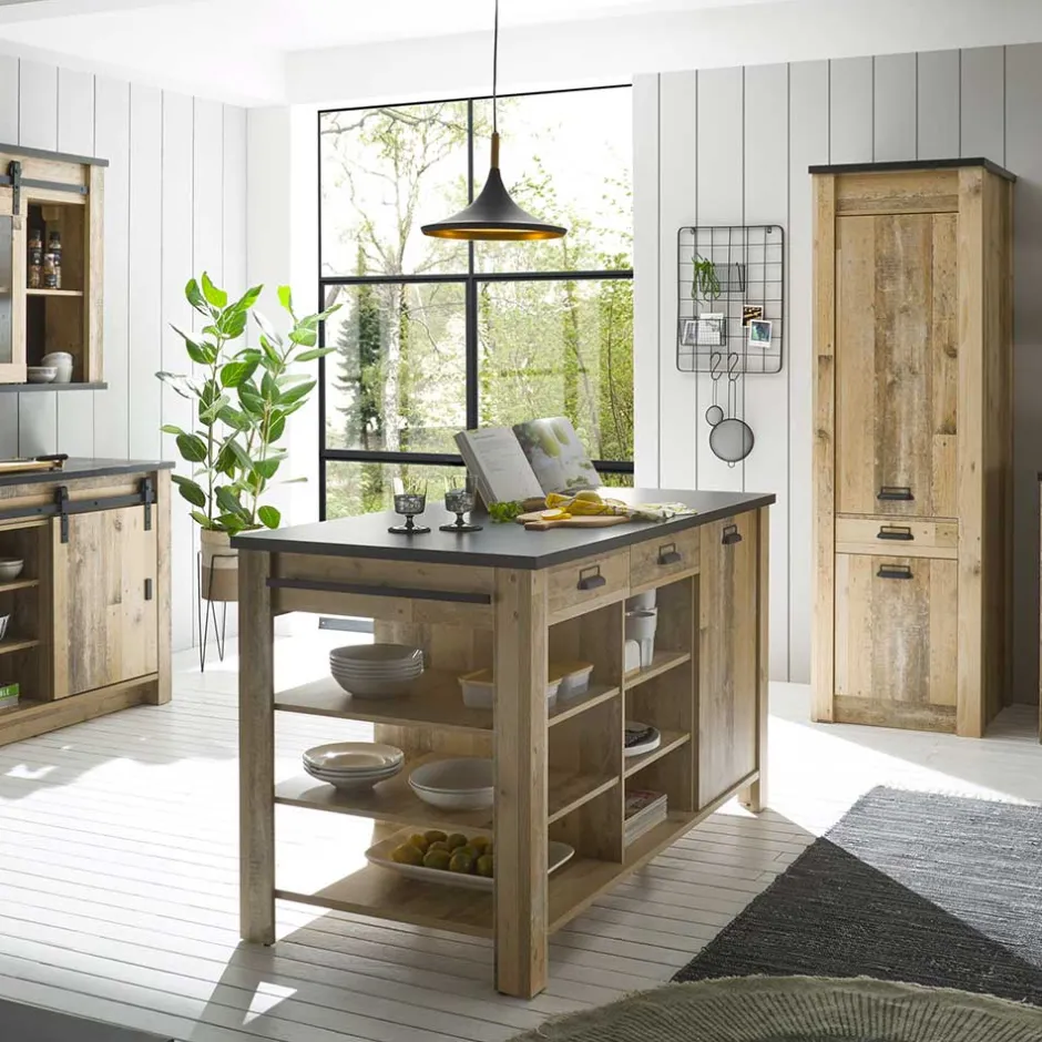 - Erstklassige Kücheninsel in Altholz Optik verwittert und Anthrazit