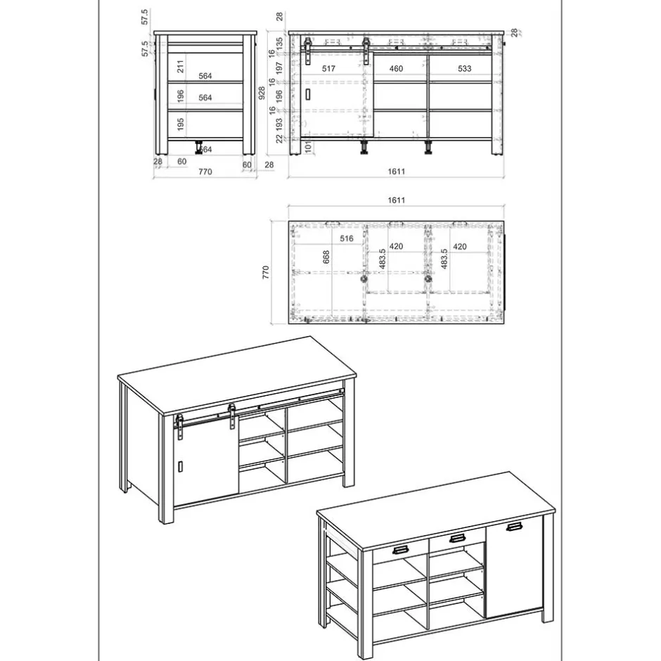 - 161 cm Breit, 93 cm Hoch, 77 cm Tief