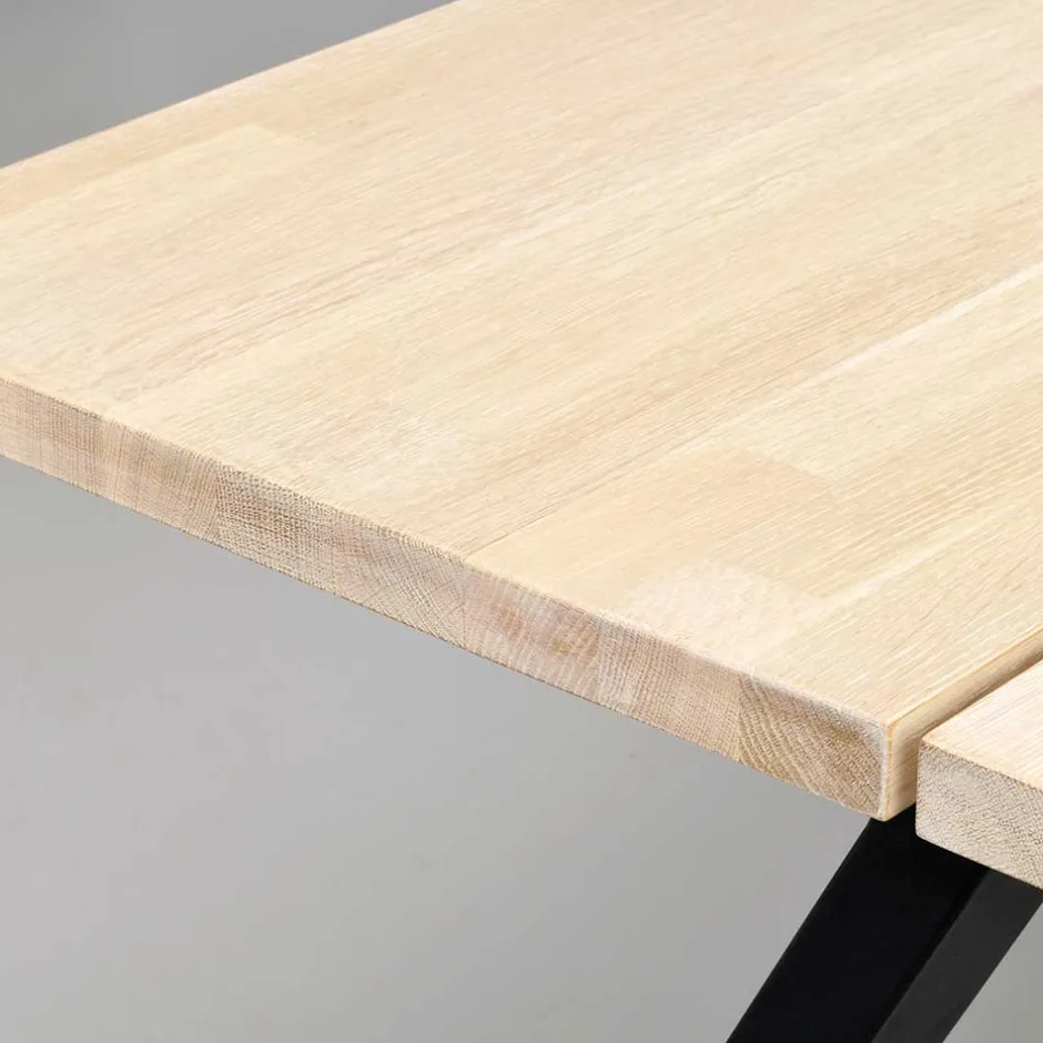 - Robuster Esstisch in Eiche White Wash und Schwarz