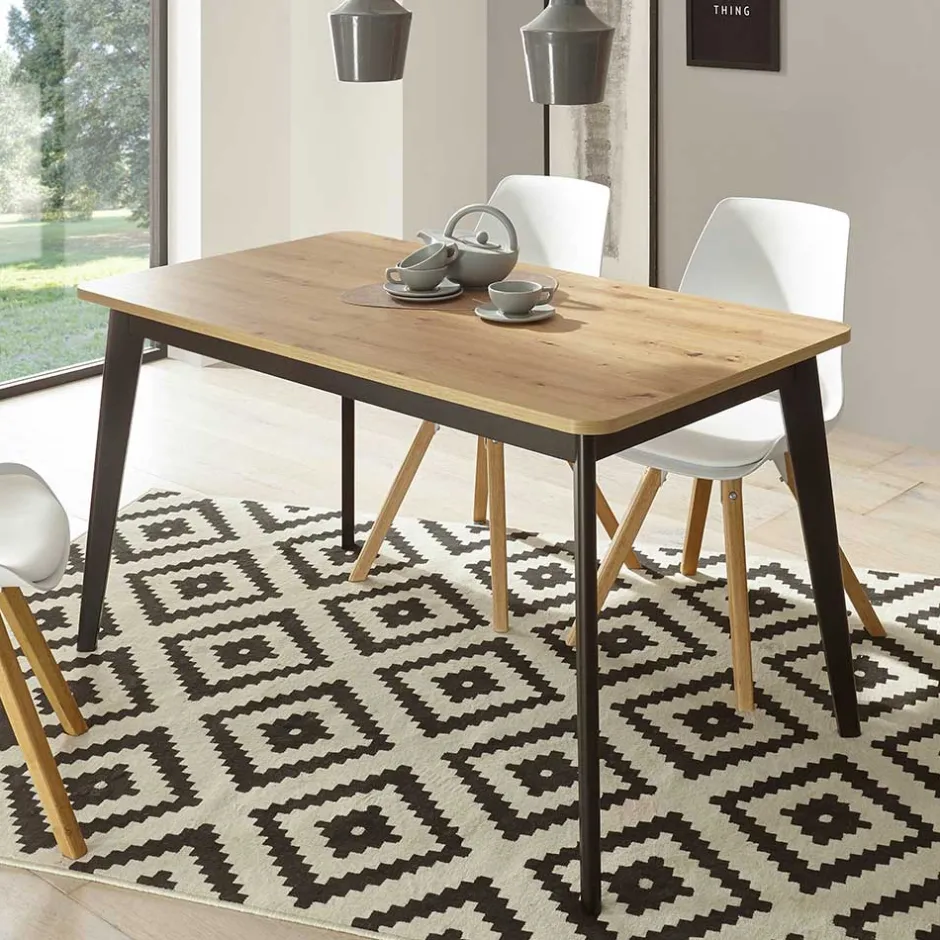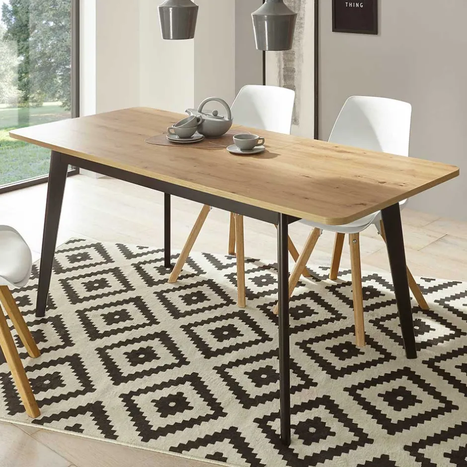 - Schlichter Esstisch in Wildeichefarben und Schwarz