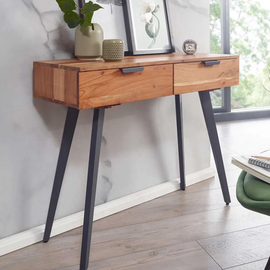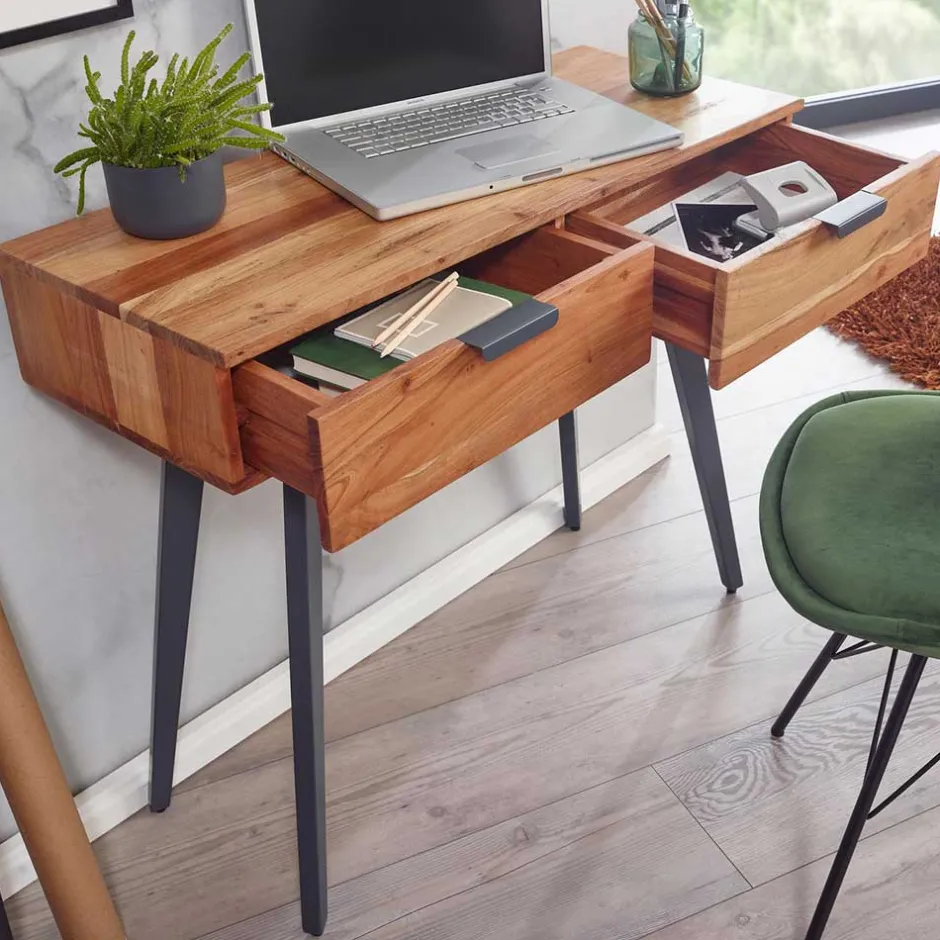 - Formschöner Schreibtisch in Akaziefarben und Schwarzgrau