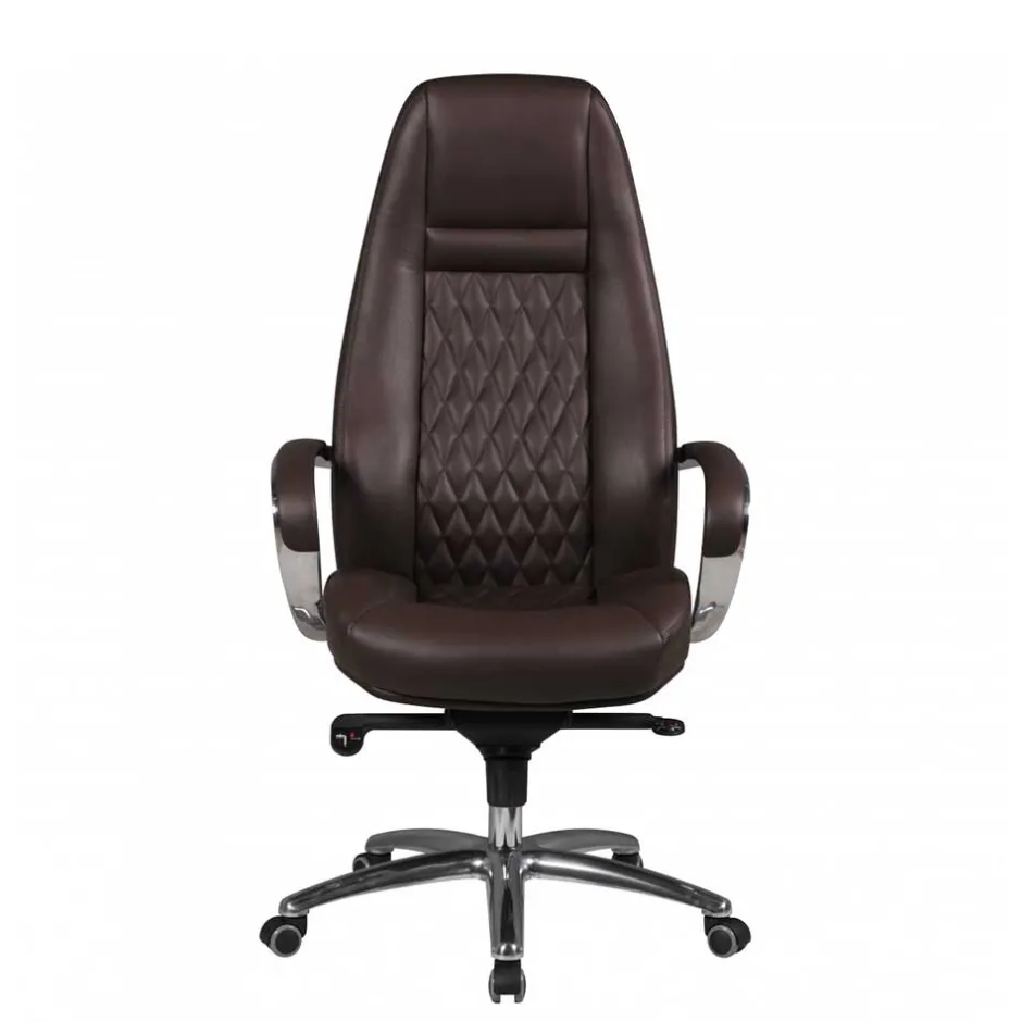 - Exklusiver Chefsessel in Dunkelbraun und Alufarben