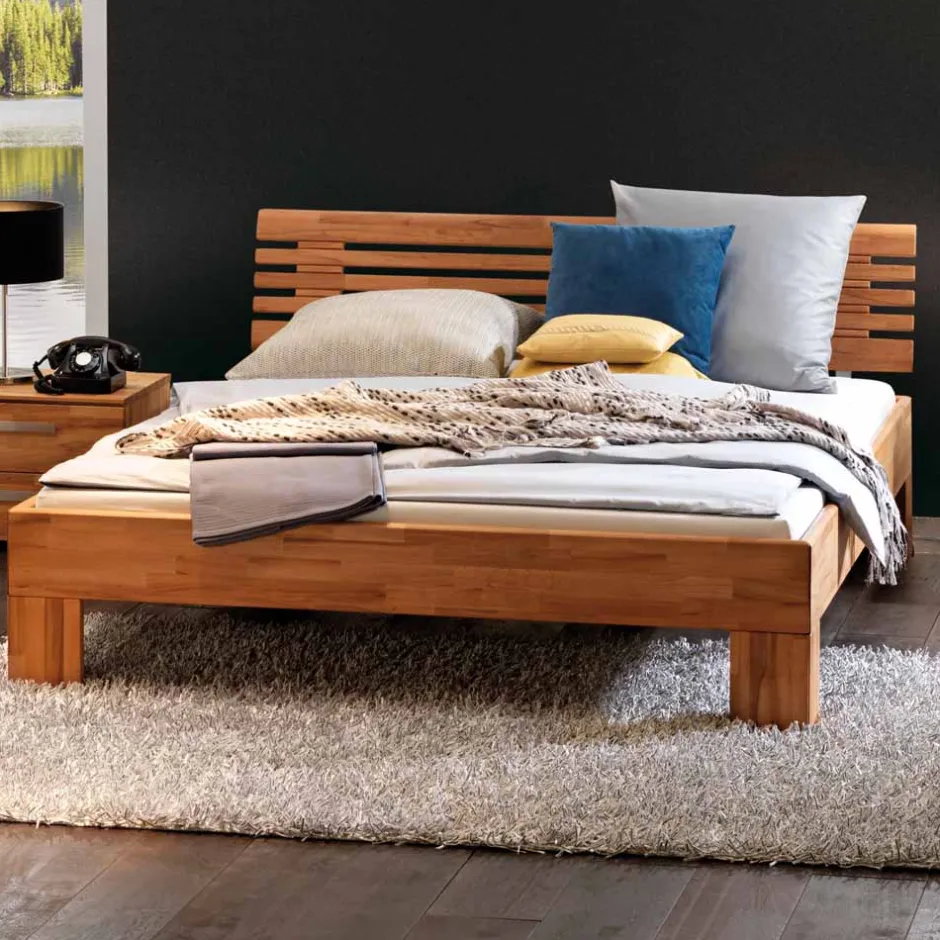 - Hochwertiges Massivholzbett in Kernbuche Naturfarben