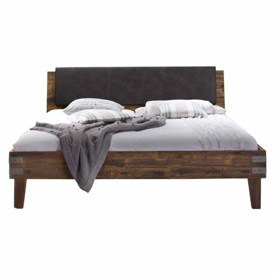 - Attraktives Kopfteil mit Polster aus Kunstleder in Anthrazit (Nutzschicht: 100% Polyurethan, Grundschicht: 60% Polyester, 40% Baumwolle)