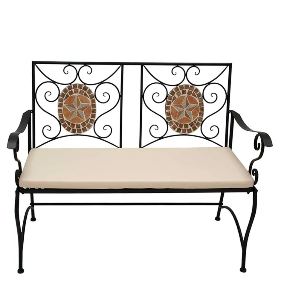 - Dekorative Gartenbank in Schwarz, Cremefarben und Brauntönen