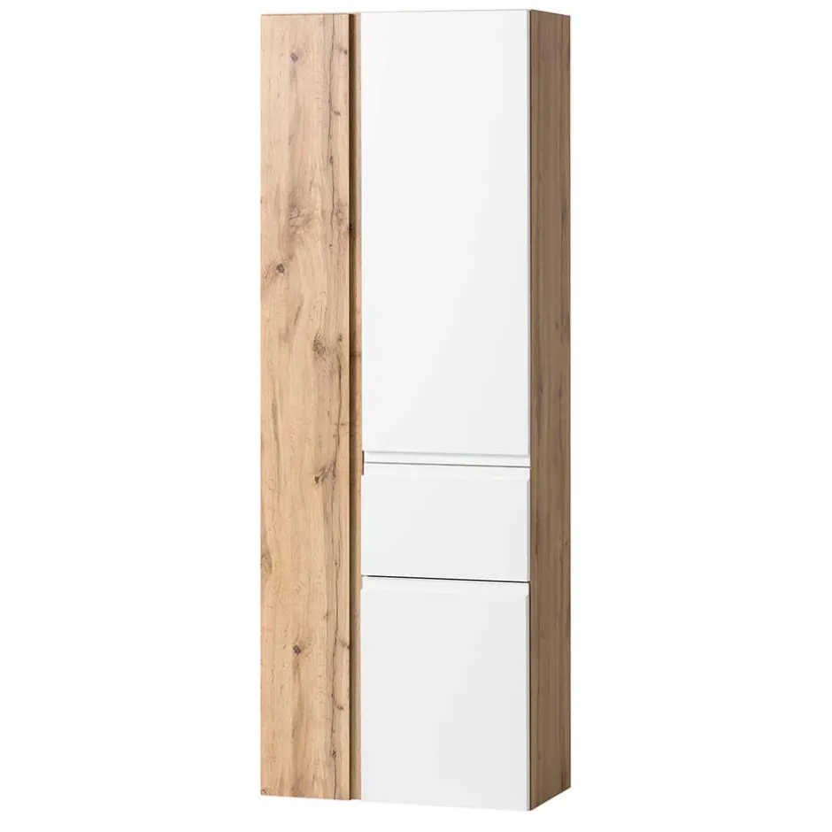 - Trendiger Bad Hochschrank in Weiß und Wildeichefarben