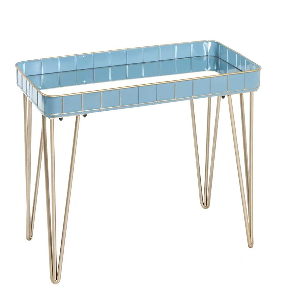 - Attraktiver Beistelltisch in Hellblau und Bronzefarben