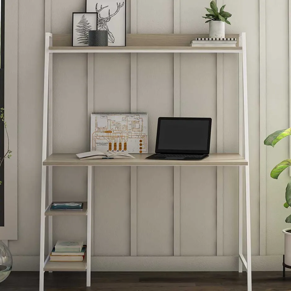 - Cooler Schreibtisch in Eichefarben und Weiß