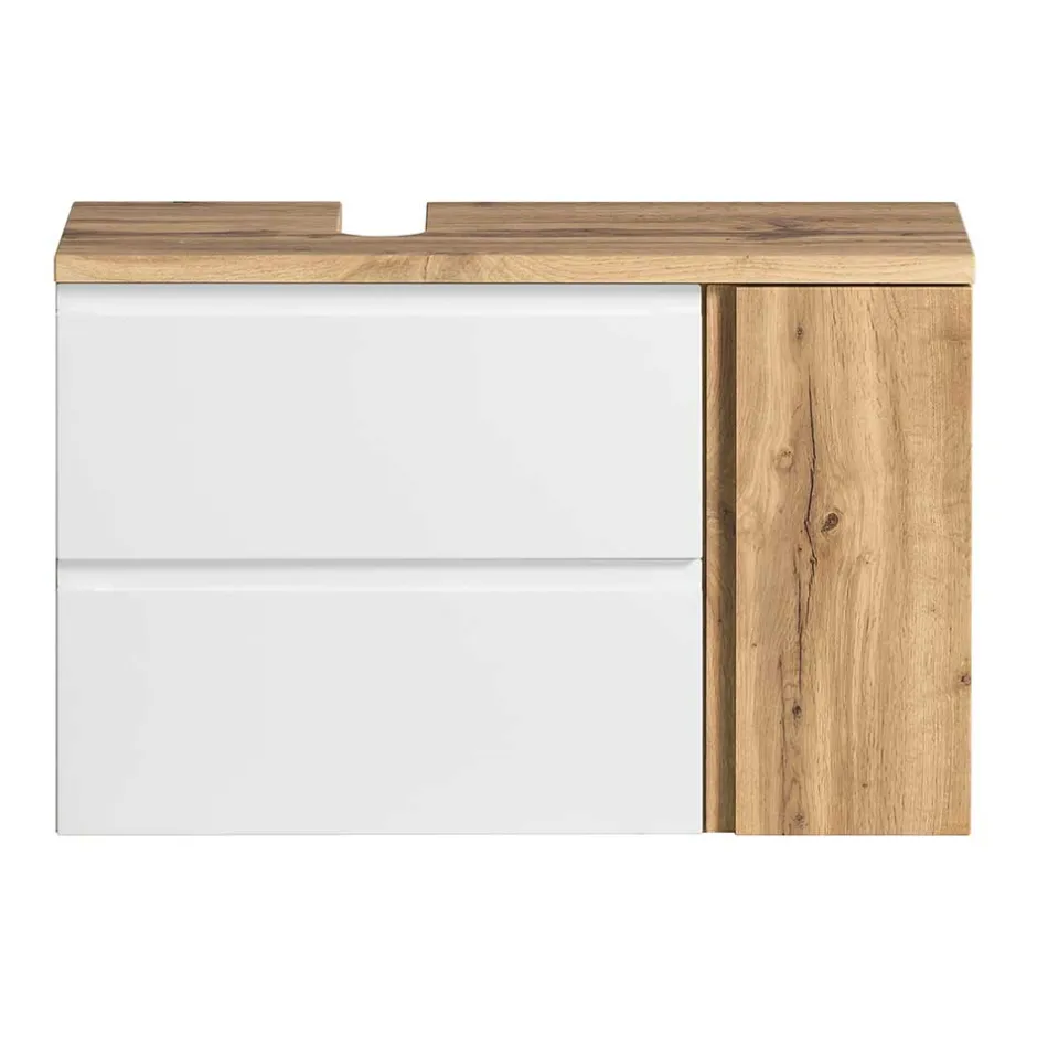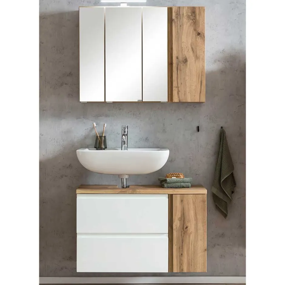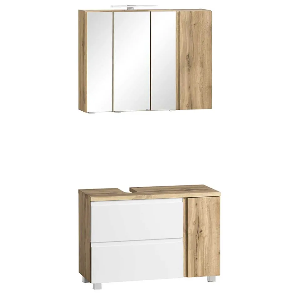 - Trendige Badmöbel in Weiß und Wildeichefarben