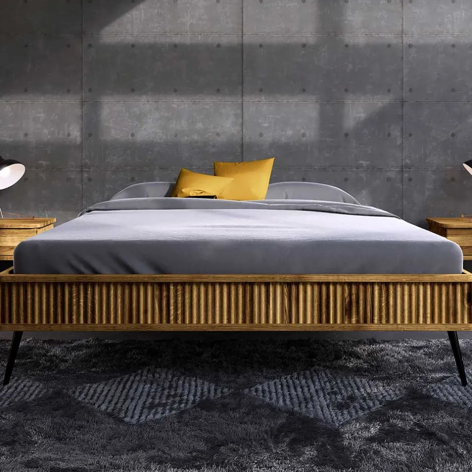 - Angesagtes Bett in Wildeichefarben und Schwarz