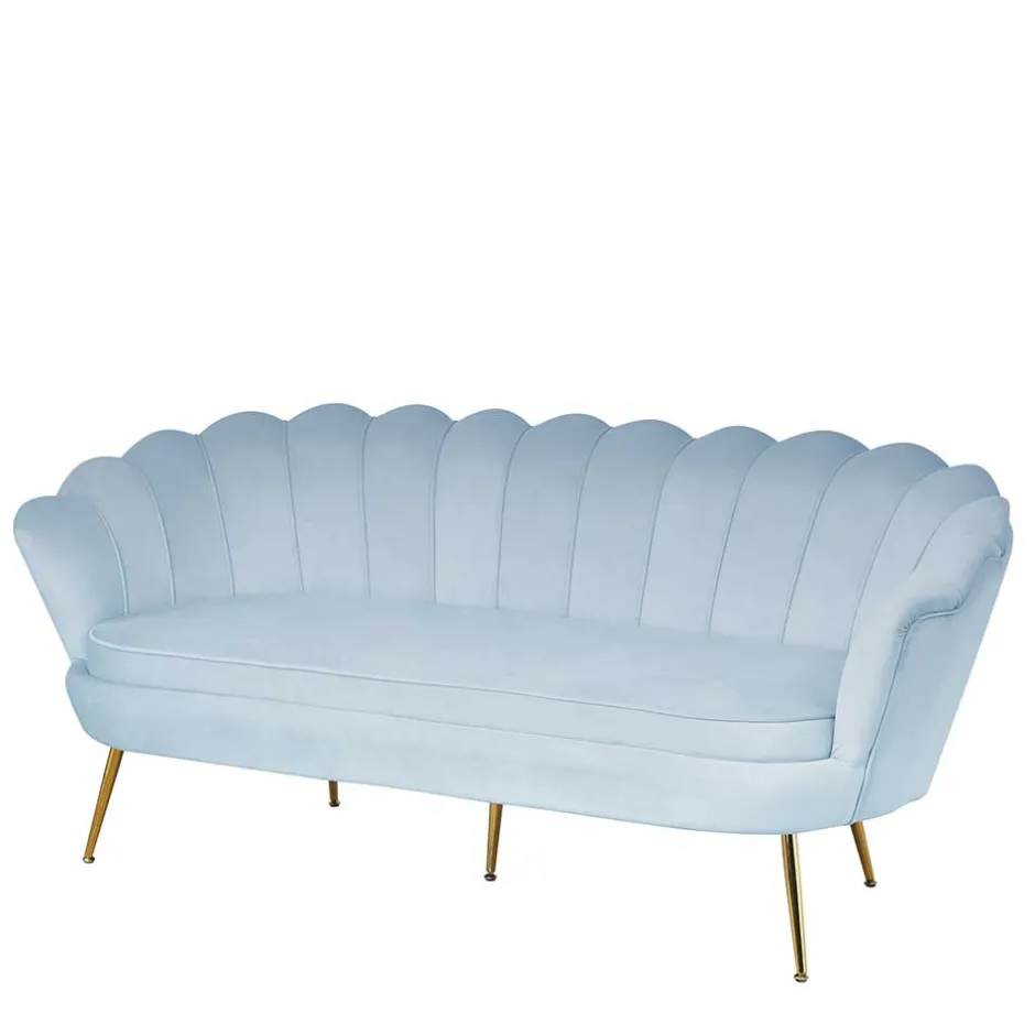 - Edles Dreisitzer Sofa in Hellgrau und Goldfarben