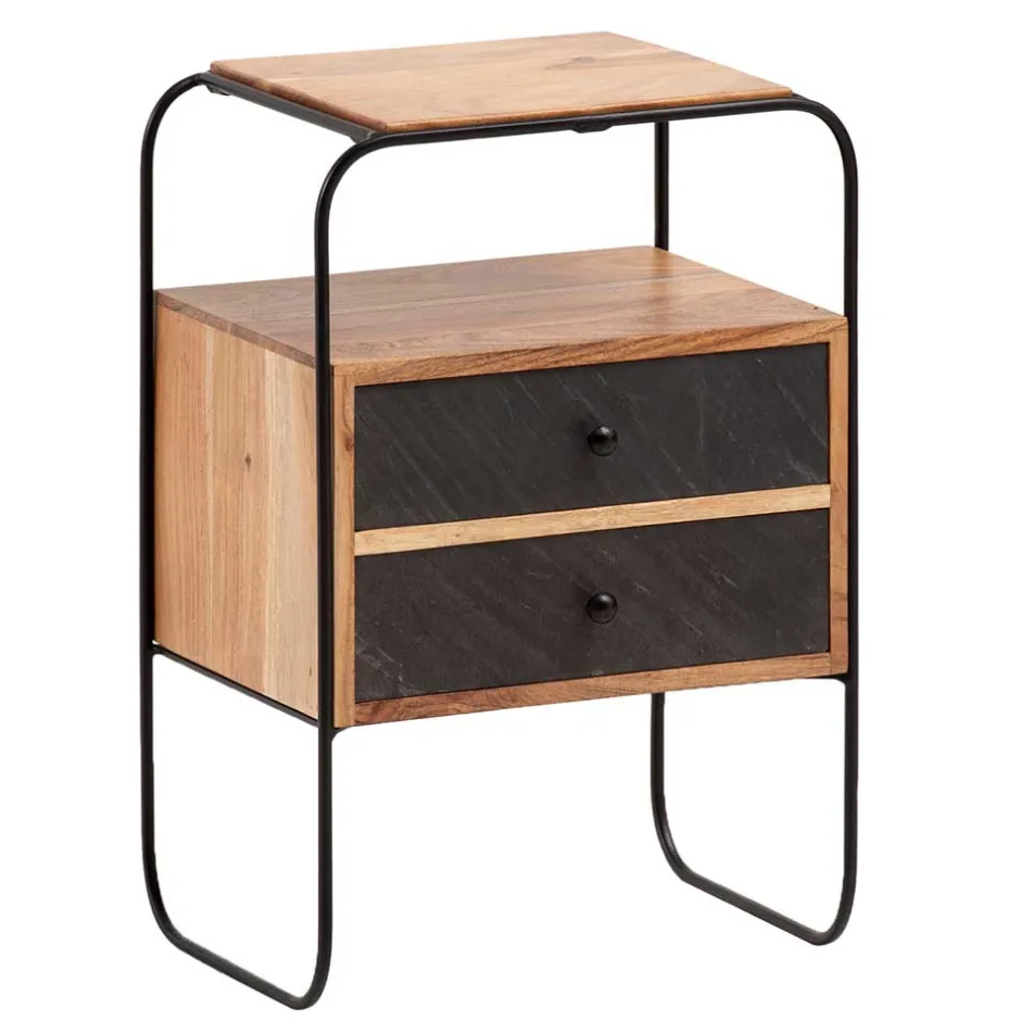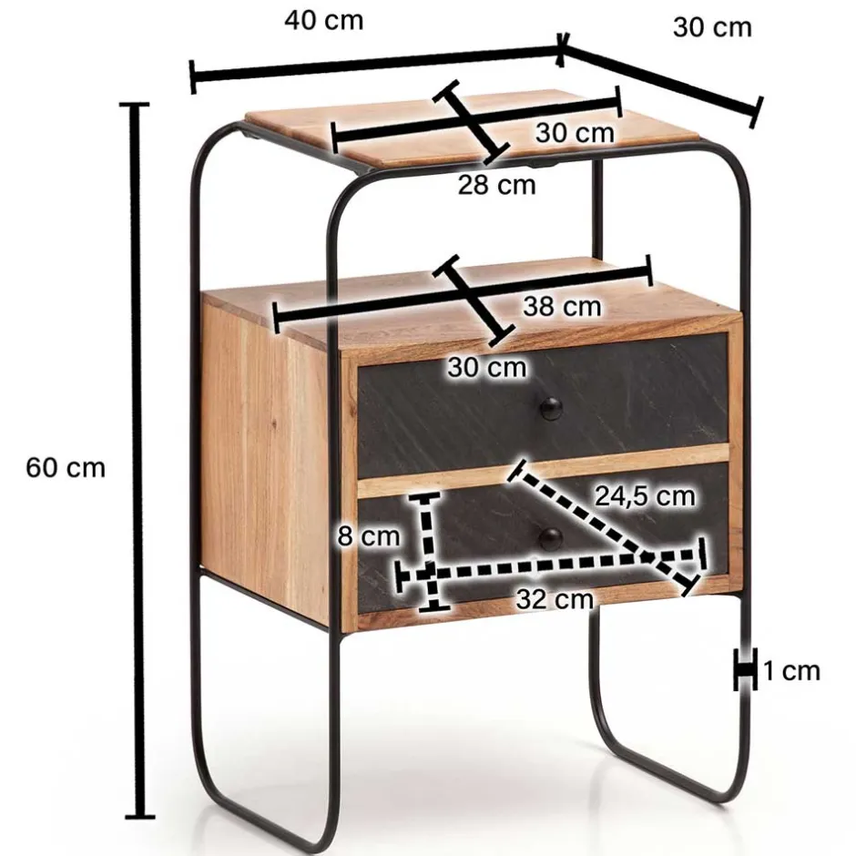 - Aktueller Boxspringbett Nachttisch in Schwarz und Akaziefarben
