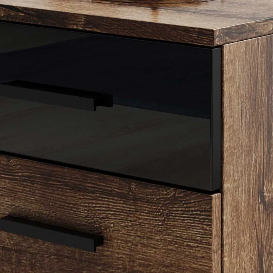 - Kompakte Nachtkommode in Wildeiche dunkel und Schwarz