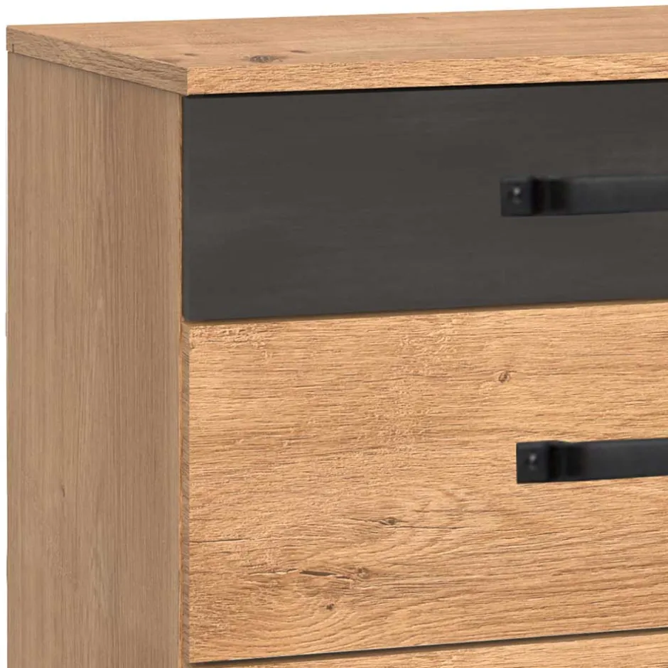 - Stylische Nachtkommode in Eichefarben und Schwarzgrau