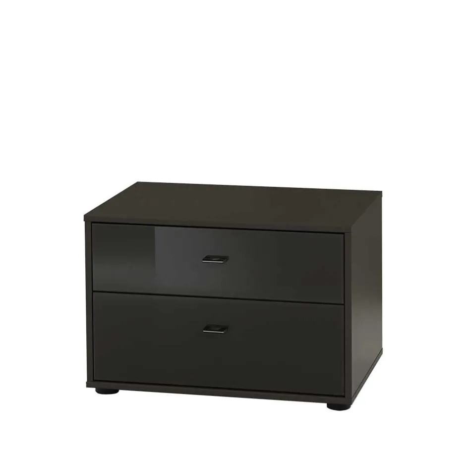 - Oberfläche vom Korpus foliert, Schubkastenfronten mit Glas beschichtet